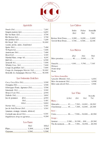 Martini blanc, rouge 4cl.................................. 4,10€ Bière pression.................. 4€........... 5.60€.......... 7€