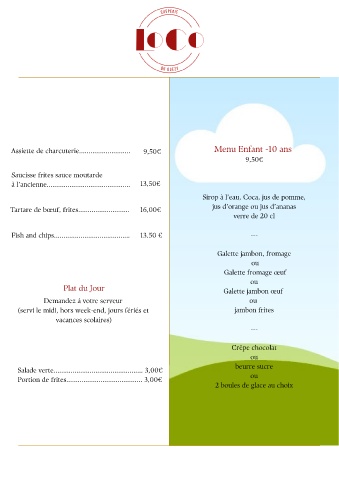 Assiette de charcuterie........................... 9,50€ Menu Enfant -10 ans