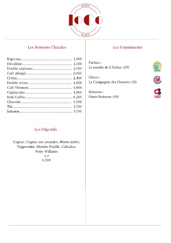 Décaféiné.................................................... 2,10€ Farines :